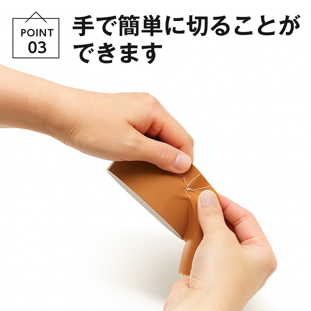 手で切れてしっかり粘着!中梱包用に使える丈夫な厚み!