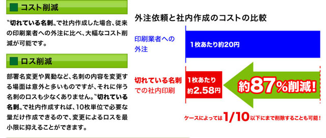 弊社もこの名刺に変えてからコストが87%削減に成功しました。