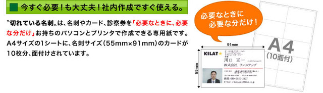 切れている名刺 (名刺1000枚作成可能) 100シート入について