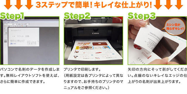 さらに、今までの名刺カードとは違い、ミシン目のないきれいなエッジ面で仕