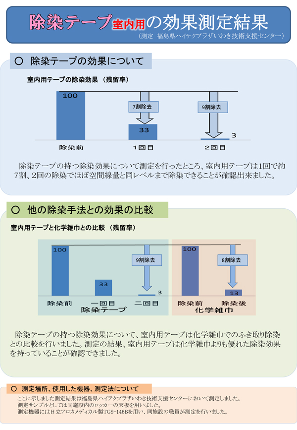 ■除染の効果については、福島県ハイテクプラザいわき技術支援センターにて測定を行い効果があることを確認しております。