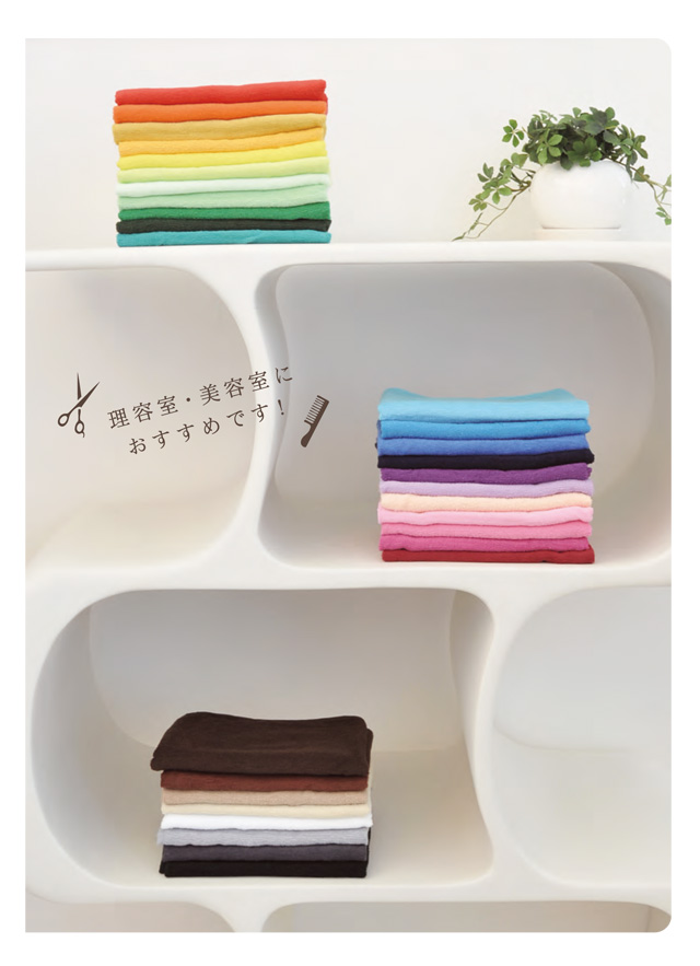 色落ちのしにくいので、理容室・美容室のフェイスタオルとしておすすめです。