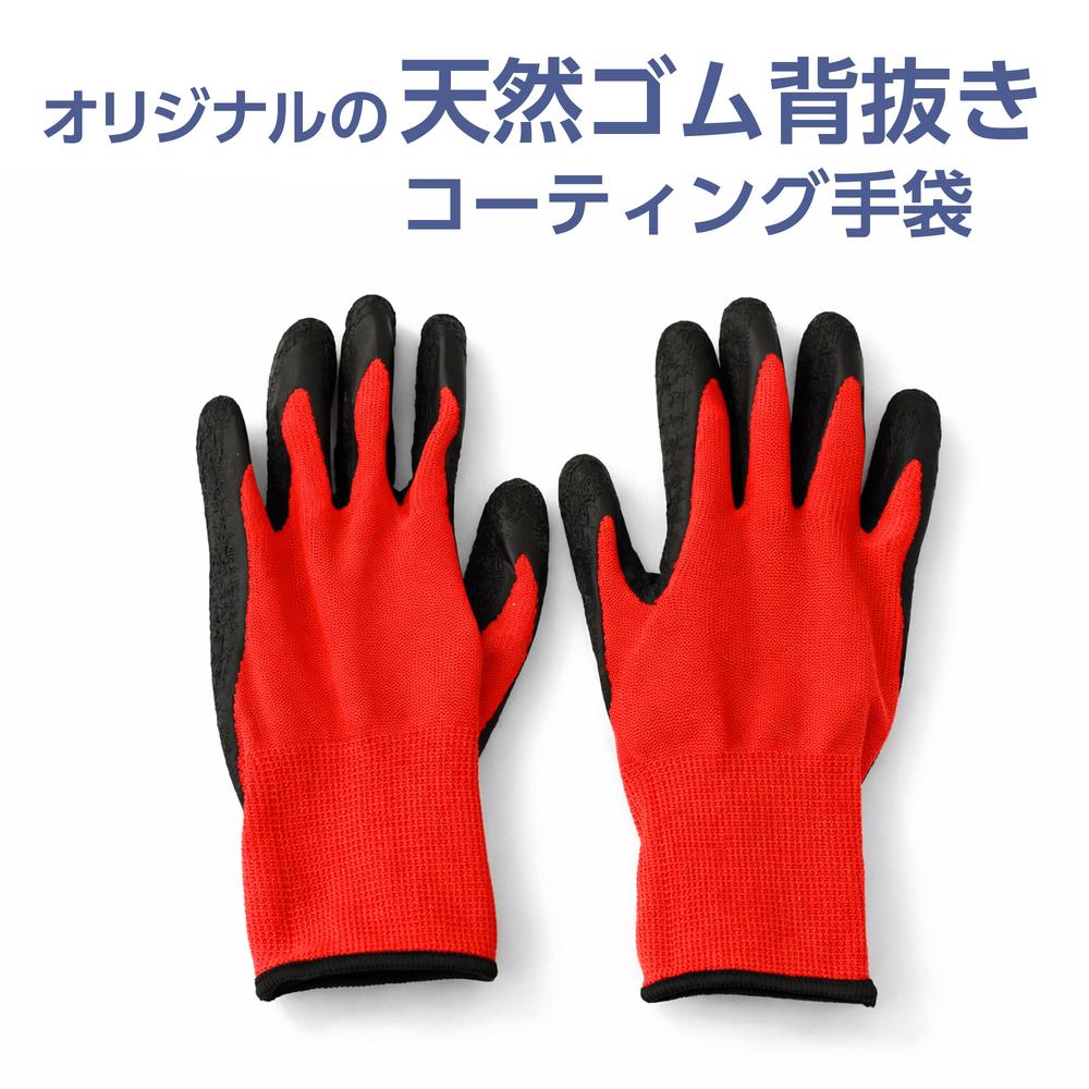 手の平に丈夫でやわらかい天然ゴムコーティングを施した手袋。