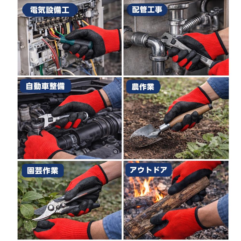 運送、流通作業、切削加工、機械加工、土木、建設、電気設備工事、配管工事、自動車整備、農作業、園芸作業、果樹収穫、アウトドアなど。