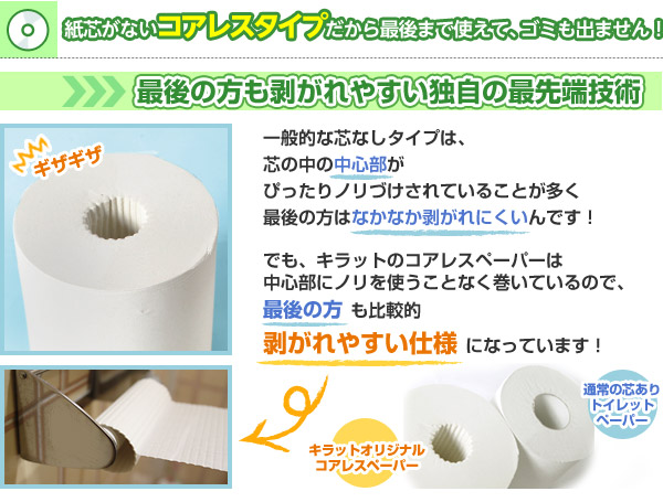 トイレットペーパーの交換てなんだか面倒だけど、これだと交換の回数も減るし、なんといってもロール芯がないのでゴミがでない!!