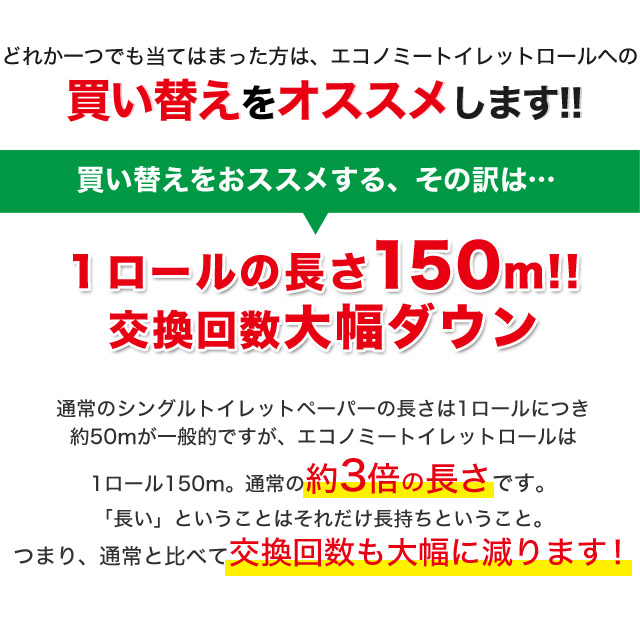 【送料弊社負担】オリジナルトイレットペーパー エコノミー シングル 芯無し 150m 8パック(48ロール)【他商品と同時購入不可】について