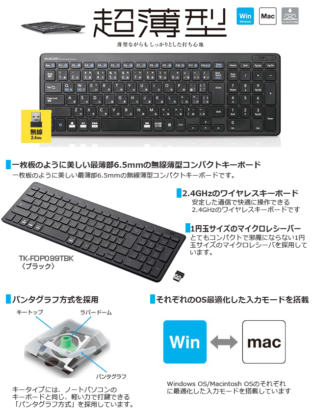 エレコム ワイヤレスキーボード ブラック TK-FDP099TBKについて