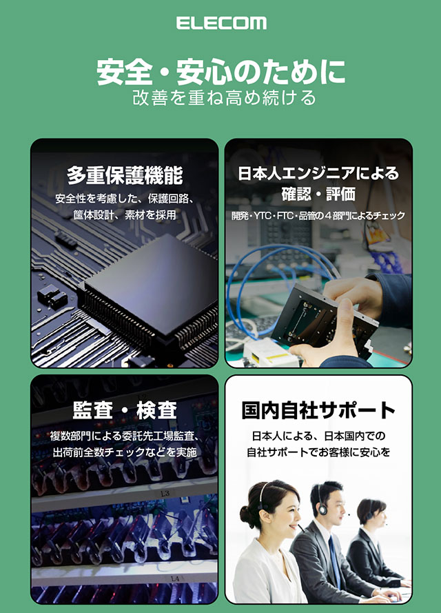 猛暑や極寒の環境でも使用でき、発火しにくい高い安全性と約2000サイクルの長寿命、優れた携帯性を実現。