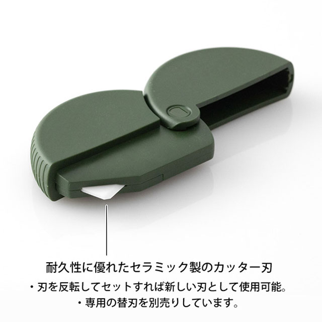 カッターの刃は錆びにくく耐久性に優れたセラミック製。