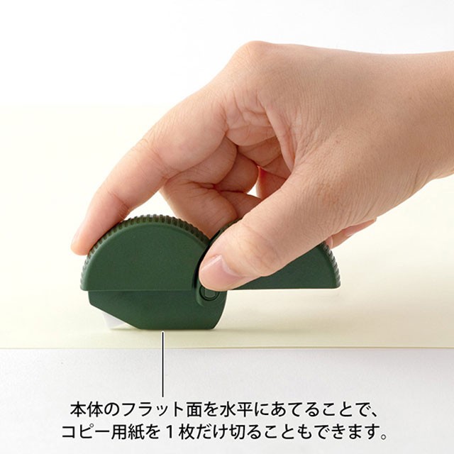 本体のフラット面を水平にあてると、コピー用紙を1枚だけ切ることができます。