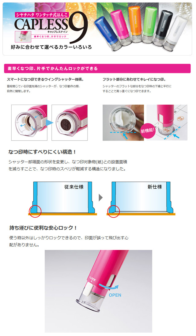 ・なつ印時にシャッターが自動的に開くウィングシャッター機構を採用。