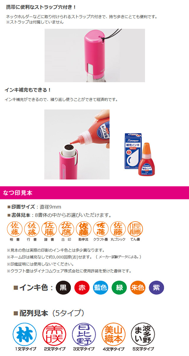 [印面サイズ]直径9mm [書体]楷書・行書・隷書・古印・丸ゴシック・てん書・勘亭流・クラフト墨