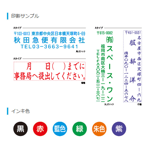 [インキ色]黒・赤・藍色・緑・朱色・紫