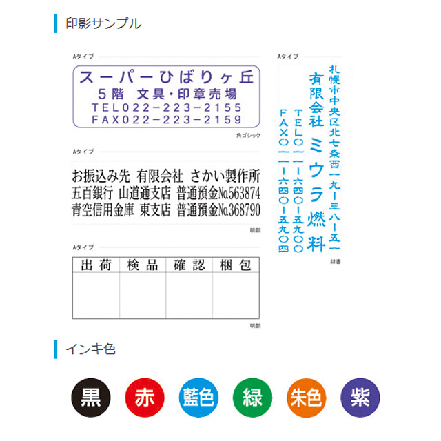 [インキ色]黒・赤・藍色・緑・朱色・紫