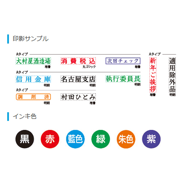 [インキ色]黒・赤・藍色・緑・朱色・紫