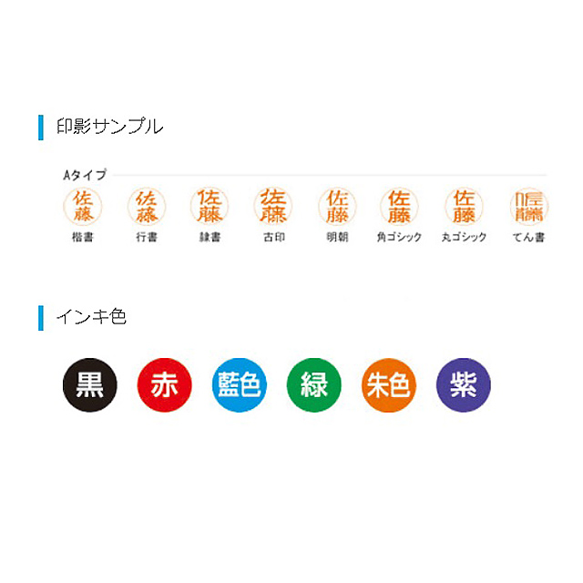 ・書体:楷書、行書、隷書、古印、明朝、角ゴシック、丸ゴシック、てん書