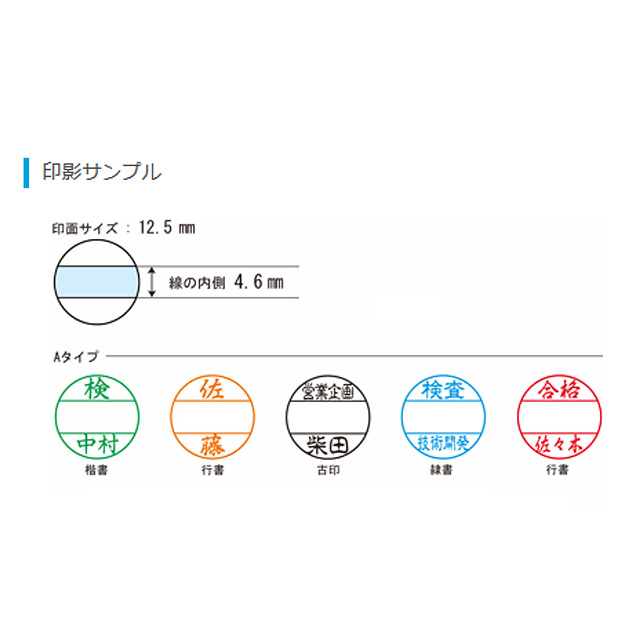 [印面サイズ]直径12.5mm [書体]楷書・行書・隷書・古印・明朝・角ゴシック・丸ゴシック・てん書・勘亭流