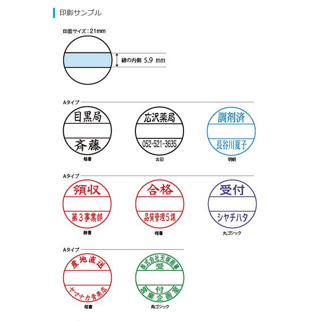 [印面サイズ]直径21mm [書体]楷書・行書・隷書・古印・明朝・角ゴシック・丸ゴシック・てん書・勘亭流