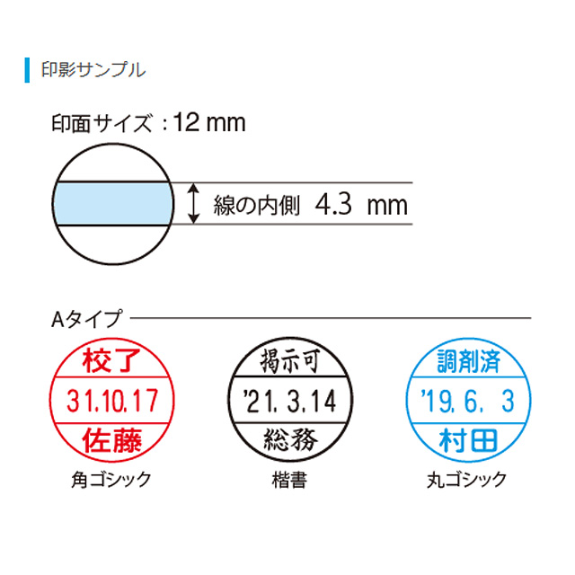 [印面サイズ]直径12mm [書体]楷書・行書・隷書・古印・明朝・角ゴシック・丸ゴシック・てん書・勘亭流