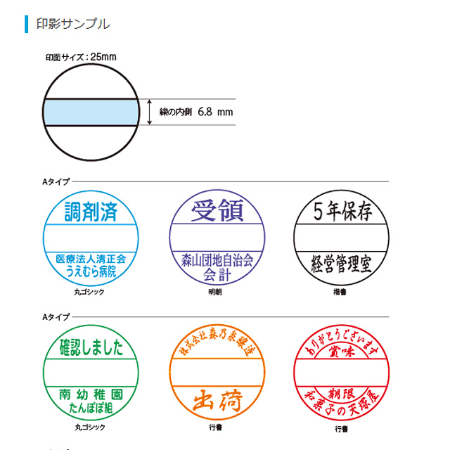 [印面サイズ]直径25mm [書体]楷書・行書・隷書・古印・明朝・角ゴシック・丸ゴシック・てん書・勘亭流