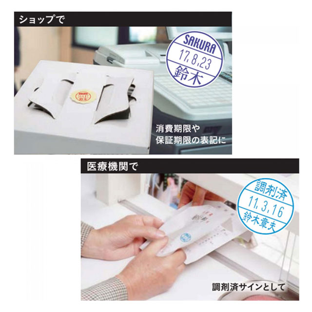 ひと捺しで日付と名前、メッセージがなつ印できるデーターネームシリーズ。