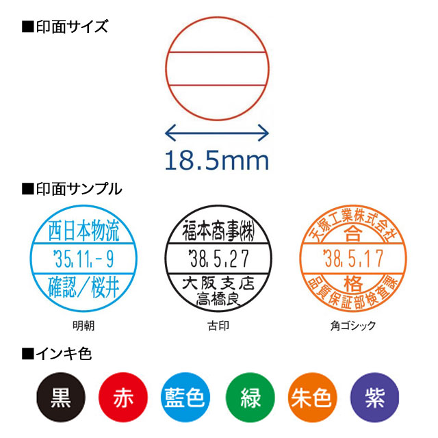書体は9種類、インキ色は6色の中からお選びいただけます。