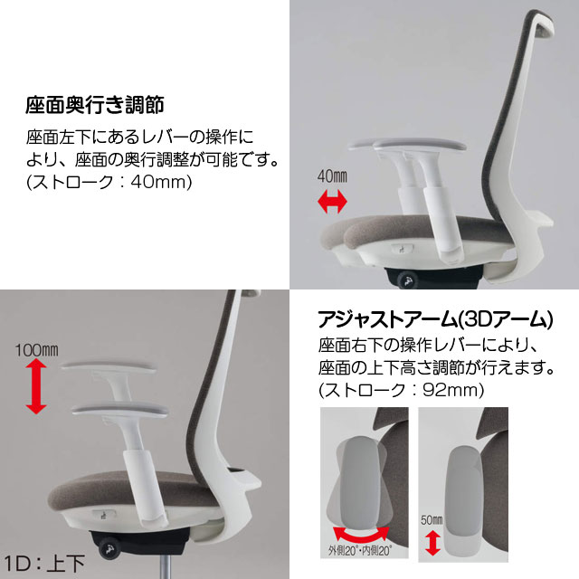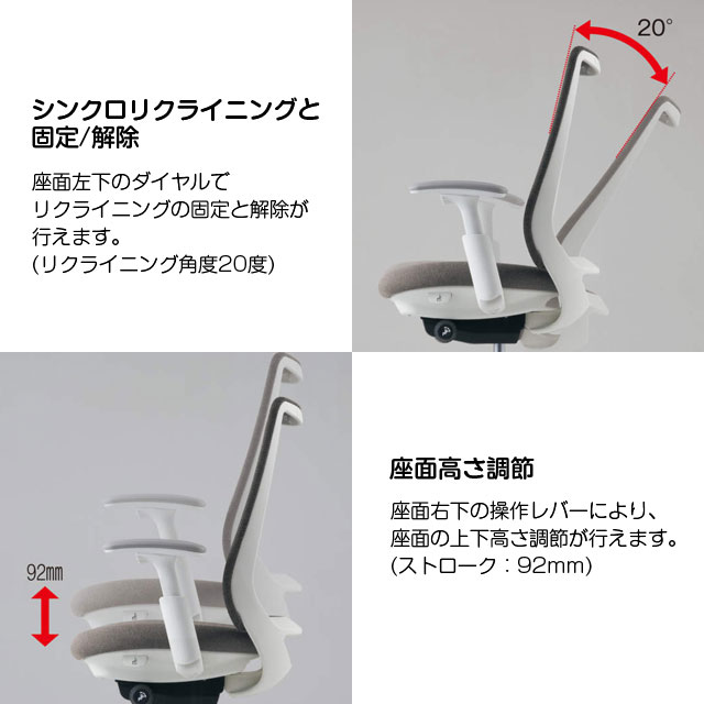 ◆機能/シンクロリクライニング、座面高さ調節、座面奥行調節