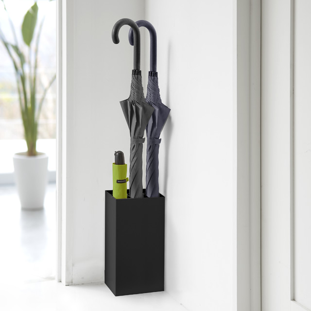 玄関の角にぴったりと収まるコンパクト角型かさたて。