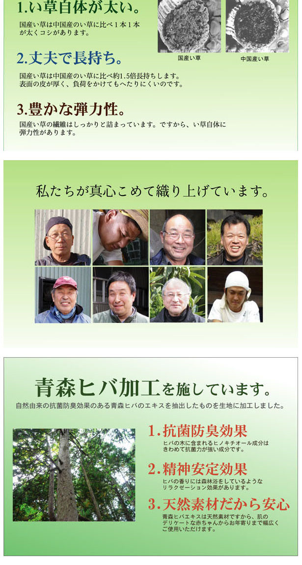 ■い草に青森ヒバ加工を施しています。(抗菌、防臭効果)