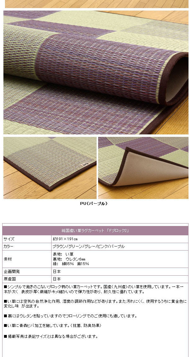 イケヒコ Fブロック2 純国産 い草ラグカーペット 約191×191cm グレーについて