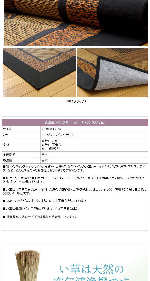 イケヒコ DXランクス総色 純国産 い草ラグカーペット 約191×191cm ベージュについて