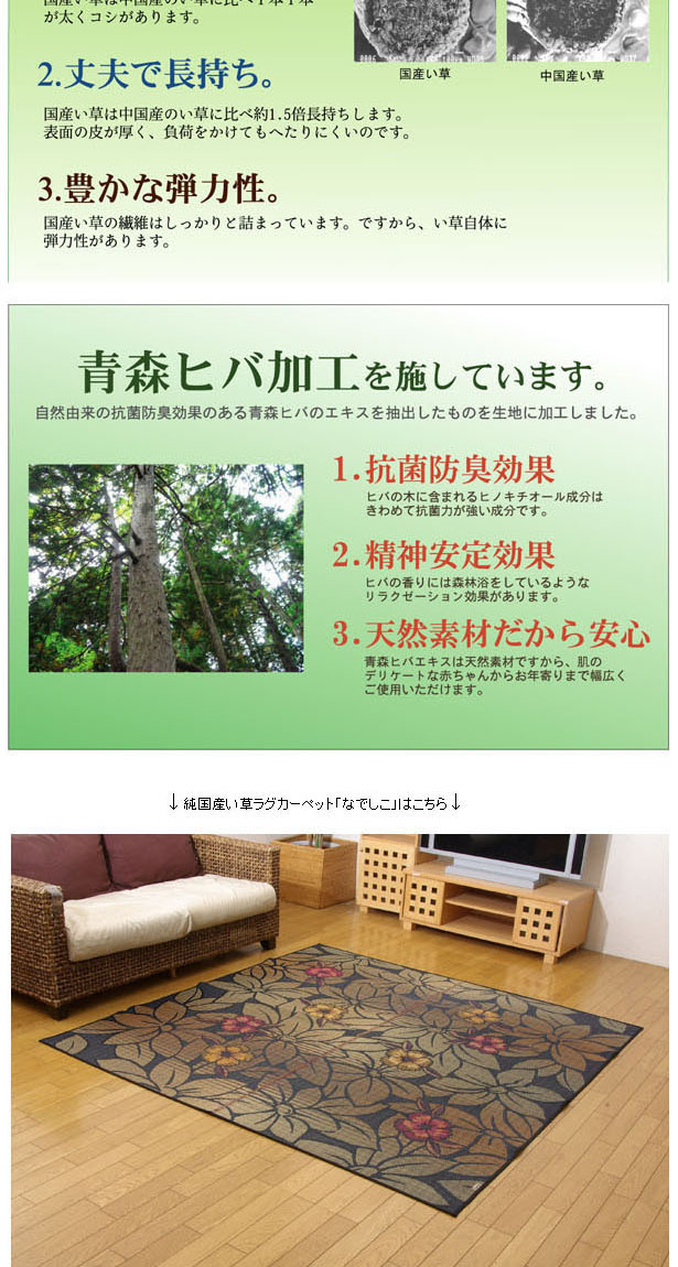 ■い草に青森ヒバ加工を施しています。(抗菌、防臭効果)