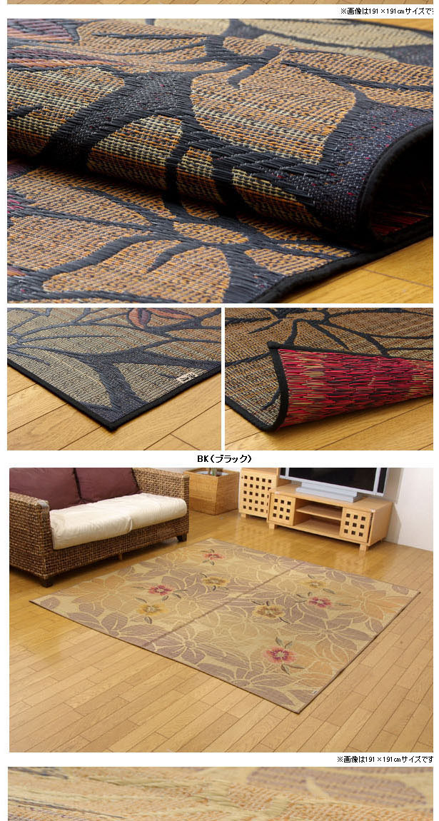イケヒコ なでしこ 純国産 袋織い草ラグカーペット 約191×191cm ブラックについて