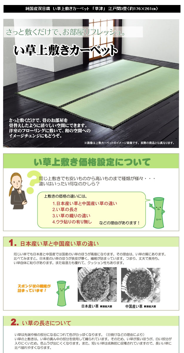 イケヒコ 純国産 双目織 い草上敷 『草津』 江戸間3畳(約176×261cm)について