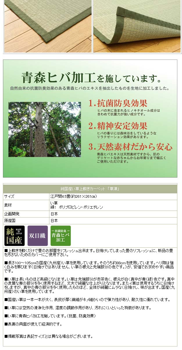 - 素材:い草(九州産) ※双目織 ヘリ=ポリプロピレン、ポリエチレン