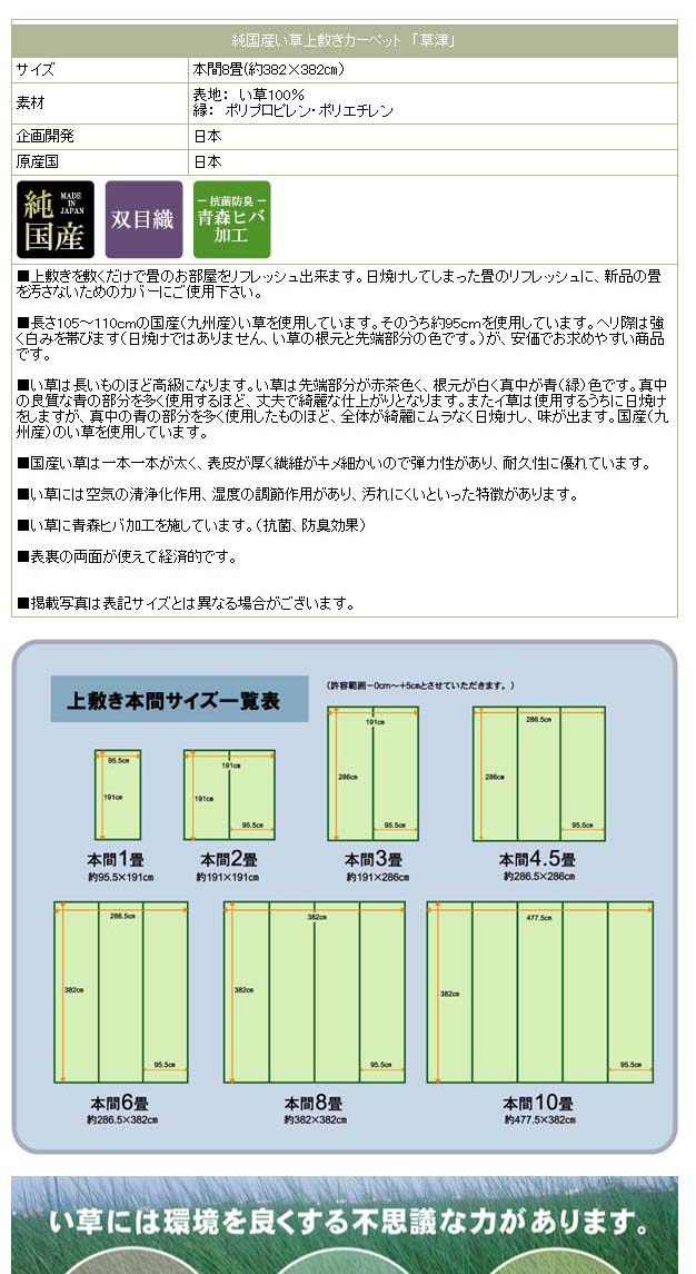 イケヒコ 純国産 双目織 い草上敷 『草津』 本間8畳(約382×382cm)について