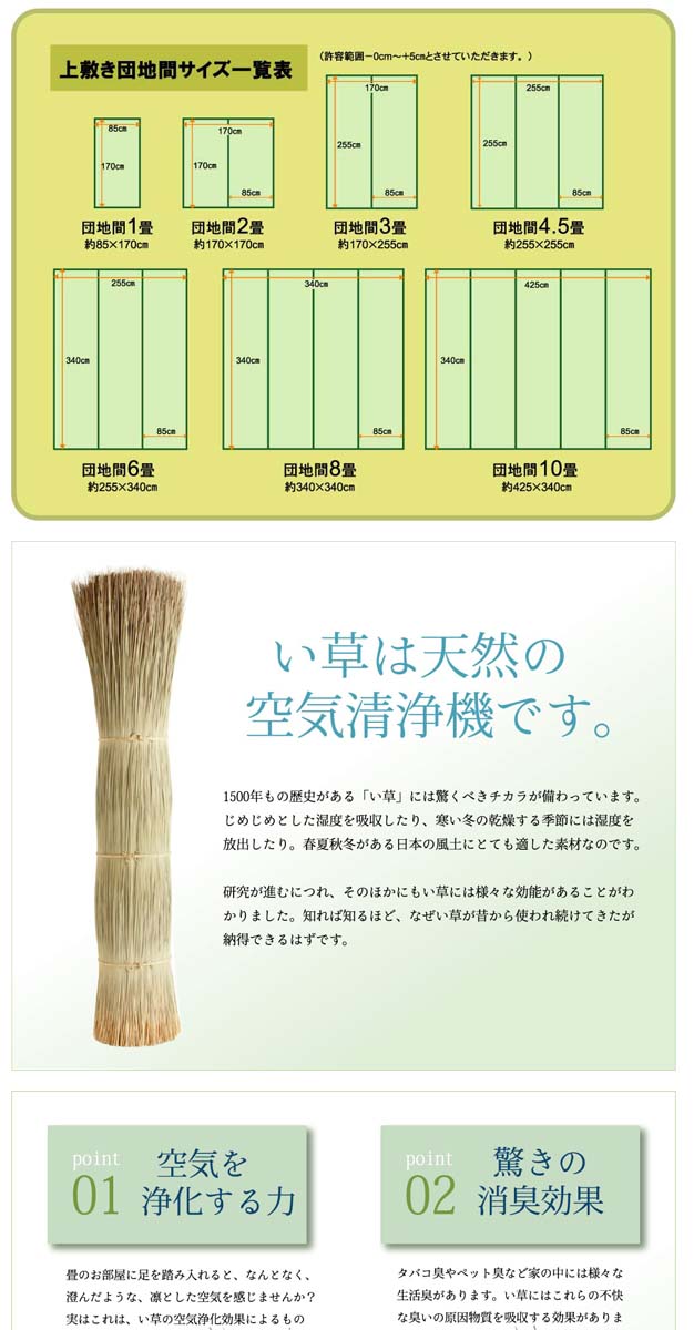 イケヒコ 純国産 双目織 い草上敷 『松』 団地間6畳(約255×340cm)について