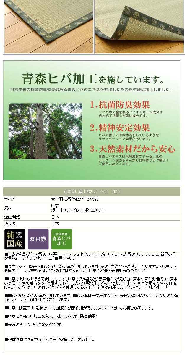 イケヒコ 純国産 双目織 い草上敷 『松』 六一間4.5畳(約277×277cm)について