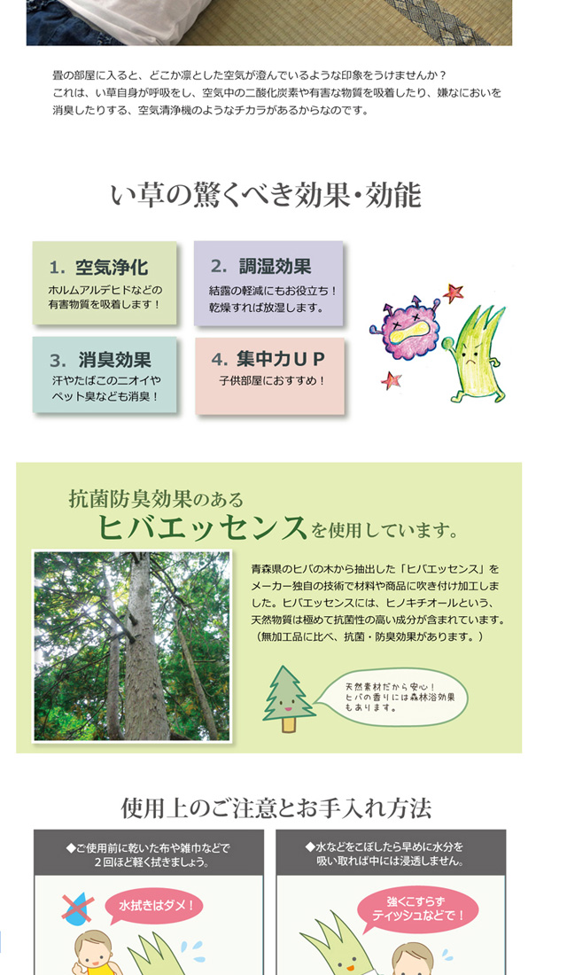 い草に青森ヒバ加工を施しています。