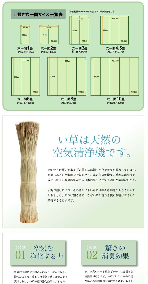 - 素材:い草(九州産) ※糸引織 ヘリ=ポリプロピレン、ポリエチレン