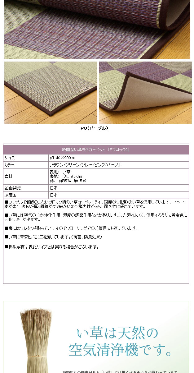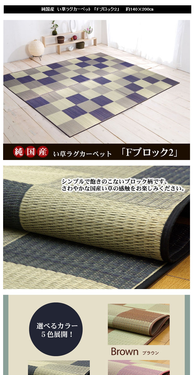 イケヒコ 純国産 い草ラグカーペット 『Fブロック2』 約140×200cm ブラウンについて