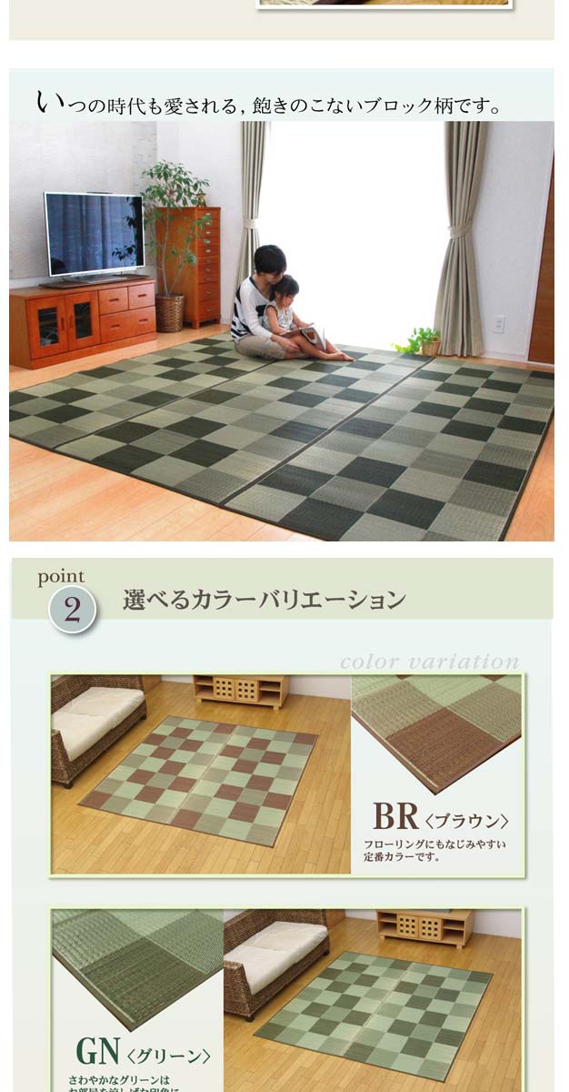 シンプルで飽きのこないブロック柄のい草カーペットです。
