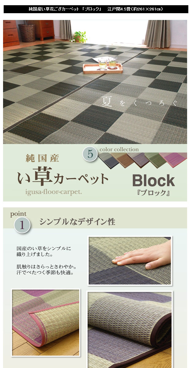 シンプルで飽きのこないブロック柄のい草カーペットです。