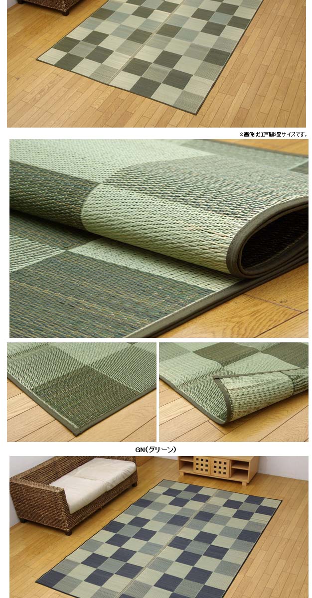 イケヒコ 純国産 い草花ござカーペット 『ブロック』 江戸間4.5畳(約261×261cm) グリーン