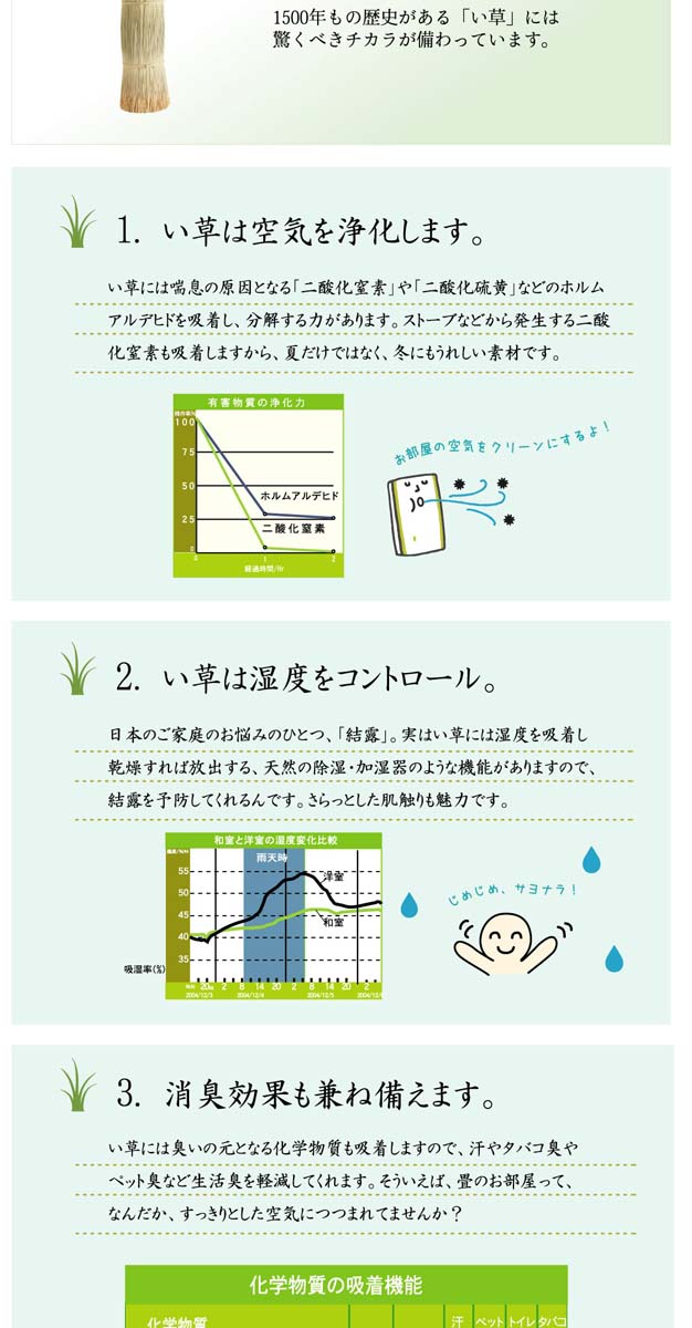 い草には空気の自然浄化作用、湿度の調節作用などがあります。