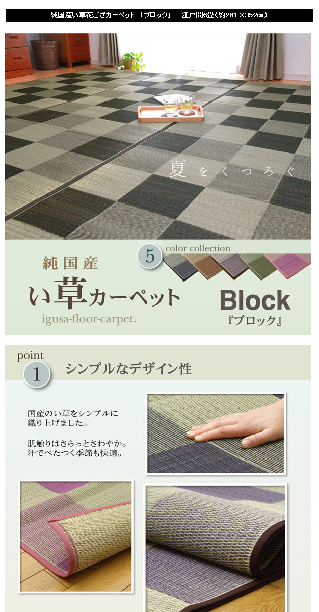 シンプルで飽きのこないブロック柄のい草カーペットです。
