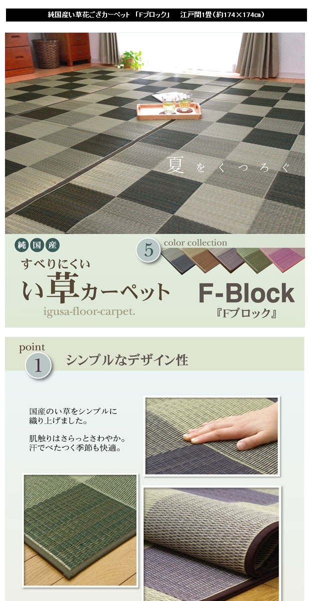 シンプルで飽きのこないブロック柄のい草カーペットです。