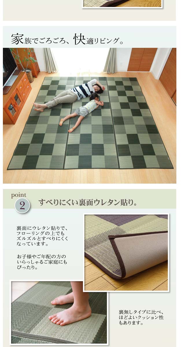 滑りにくいウレタン貼りの純国産い草カーペットです。