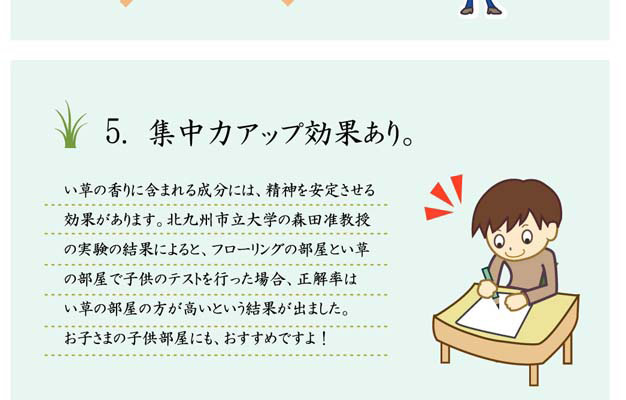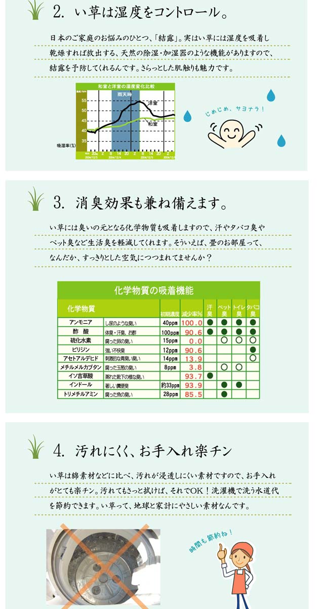 い草には空気の自然浄化作用、湿度の調節作用などがあります。