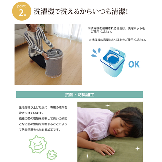 ご家庭の洗濯機で洗えるウォッシャブル仕様ですので、清潔にご使用頂けます。
